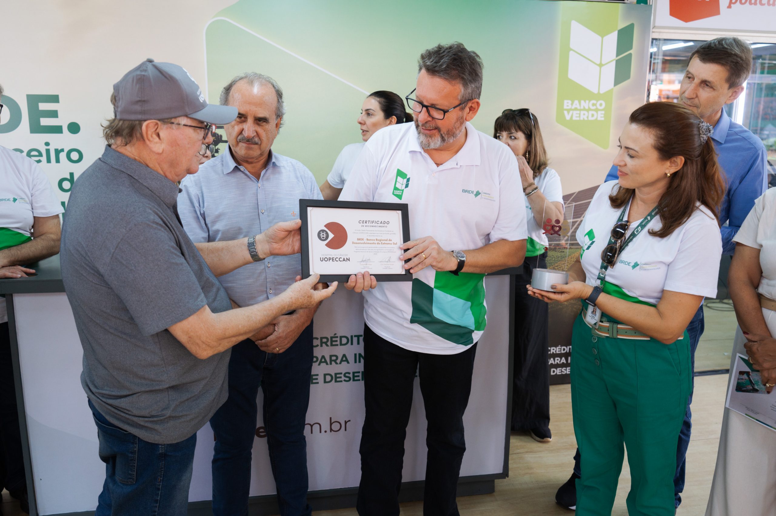 O Banco Regional de Desenvolvimento do Extremo Sul (BRDE), recebeu durante o Show Rural, o Troféu de Empresa Amiga do Hospital União Oeste Paranaense de Estudos e Combate ao Câncer (UOPECCAN), de Cascavel – PR, em razão de repasse via incentivos fiscais, pela Lei de Incentivos. Na ocasião, o BRDE fez a entrega de certificado de parceria com a instituição. “O BRDE tem o compromisso de contribuir com a sociedade, em suas ações sociais, culturais, relativas à saúde, à criança e adolescente e ao idoso, através da renúncia fiscal, para humanizar nossas relações e sobretudo, fazer o papel de ente público na promoção do bem-estar social”, detalhou o diretor financeiro, Wilson Bley Lipski.