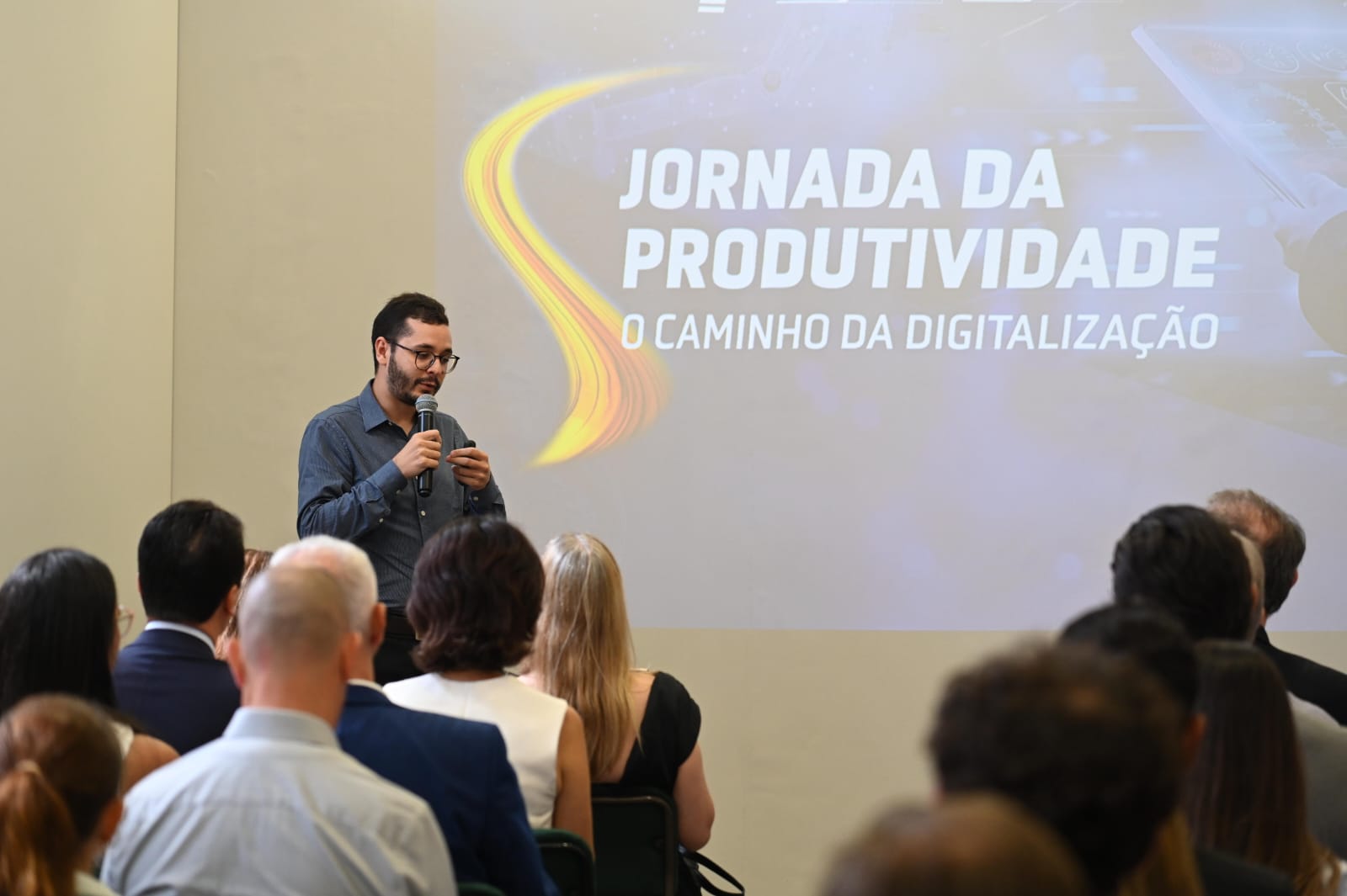 O coordenador de Tecnologia e Inovação do Instituto Senai de Tecnologia em Produtividade, Cícero Gulyas Spartallis, apresentou, ao lado do gerente da área, Almir Silva, o programa Brasil Mais Produtivo. Criado em 2024, o programa busca impulsionar a eficiência e a inovação na indústria brasileira por meio de uma metodologia de melhoria de processos, aliada a uma linha de crédito com uma das taxas mais baixas para investimentos em produtividade.