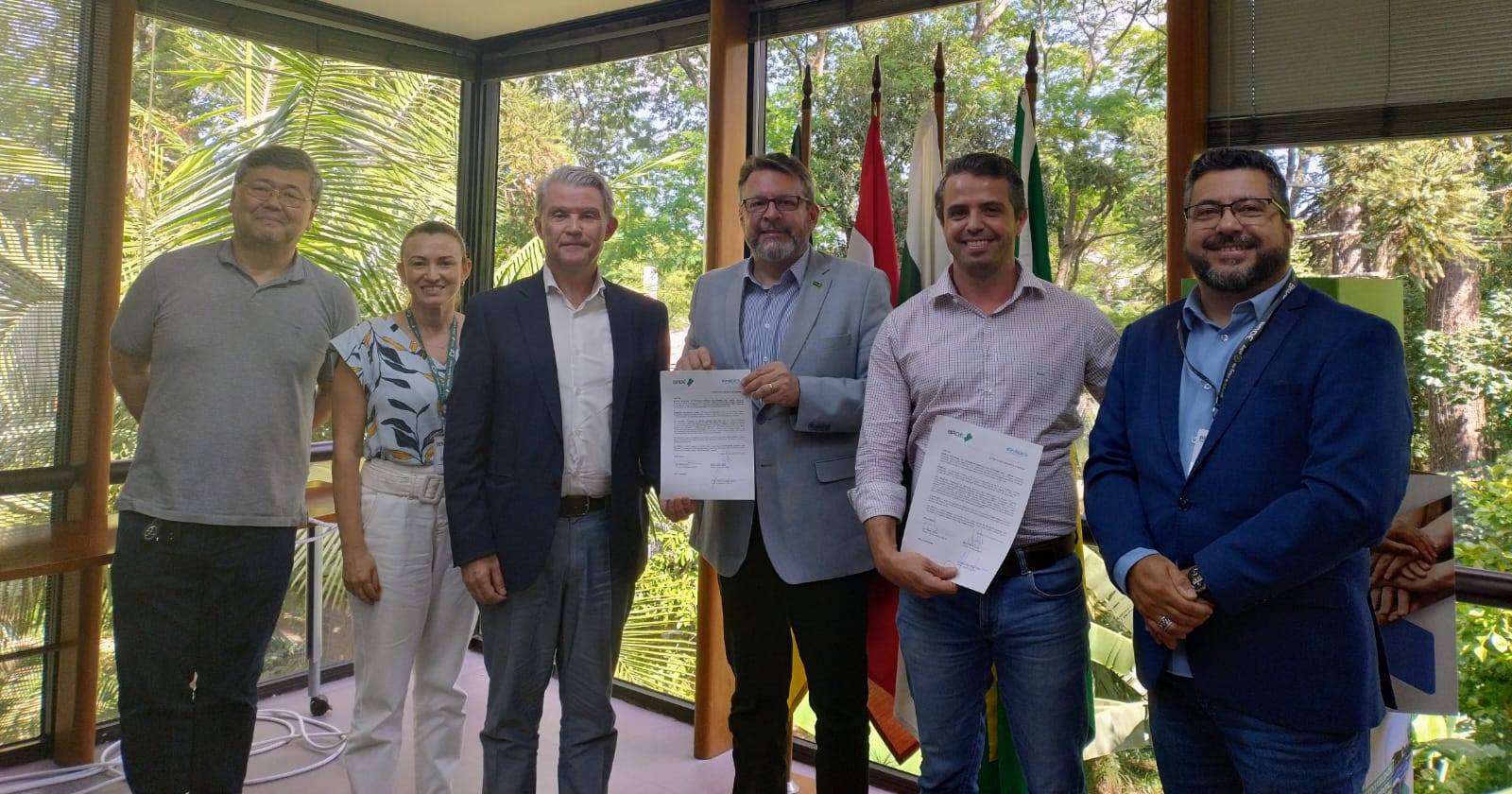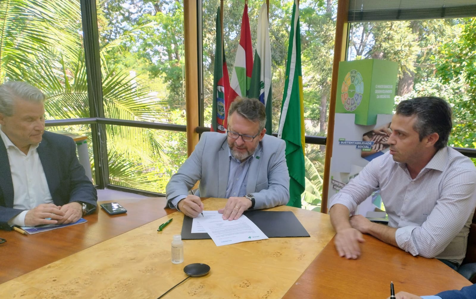 Também participaram da assinatura, a gerente de Planejamento Lisiane Astarita e o Chefe da Coordenadoria de Implementação de Exigências Regulatórias, Anderson José Amâncio, ambos do BRDE; o diretor do Centro de Pesquisa do IPARDES, Júlio Suzuki e a chefe de gabinete do instituto, Sonia Regina.