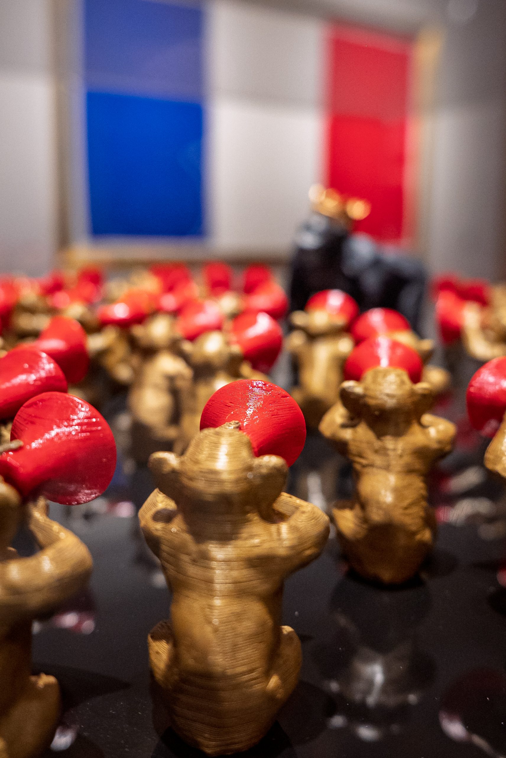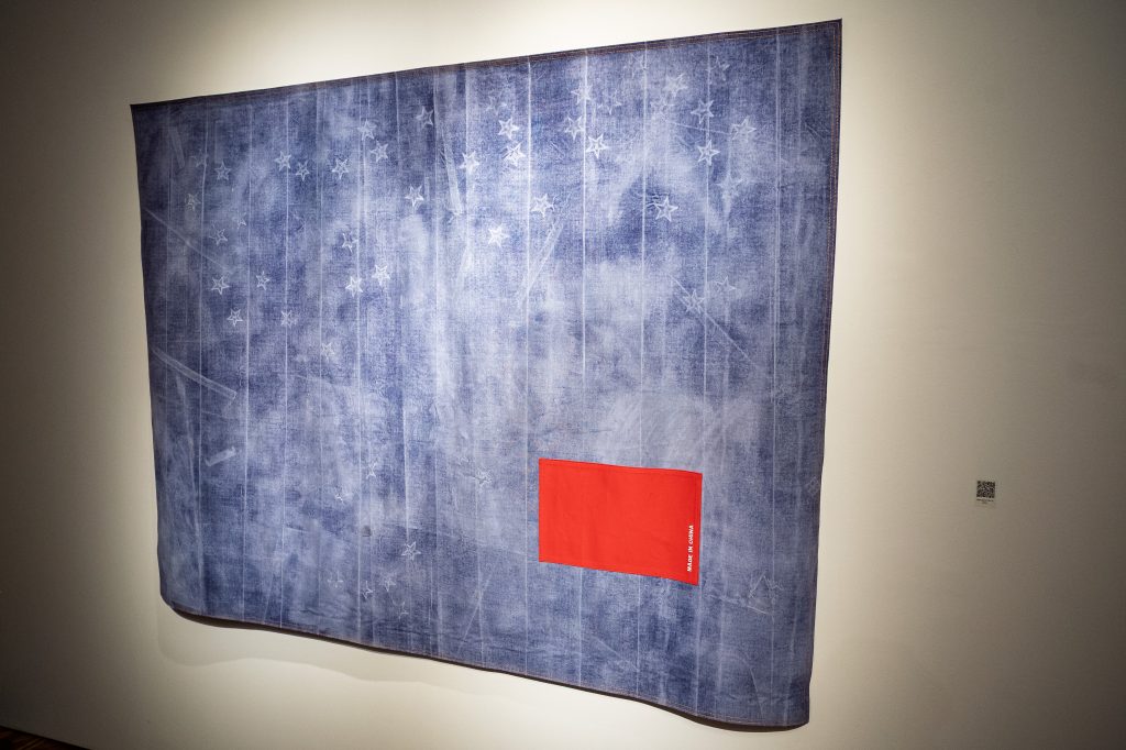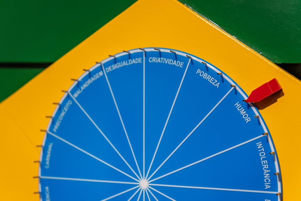Bandeira do Brasil I (2020) tem a forma de roleta, na qual os resultados possíveis são estereótipos associados ao país. Um símbolo nacional em forma de jogo de azar indica as contradições e idiossincrasias de ser brasileiro. Bandeira do Brasil II (2020), que traz significantes similares, é confeccionada com madeiras típicas de diferentes biomas do país, recursos naturais que são alvo de cobiça desde 1500. Bandeiras de outras nações sobrepõem símbolos de orgulho e questões como xenofobia ou consumo de luxo, sintomas de desigualdade social.