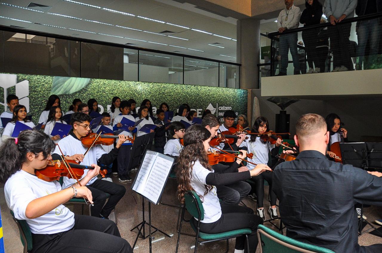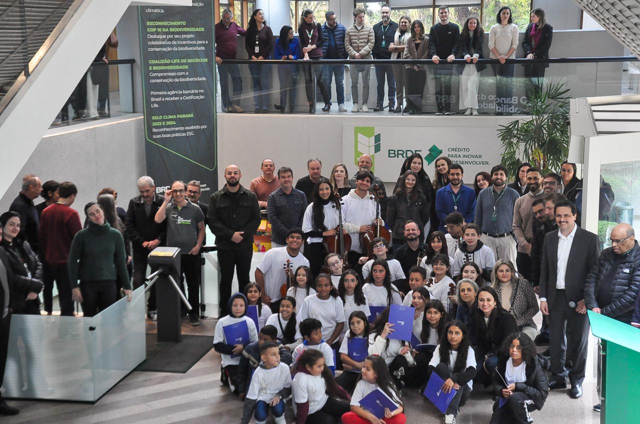 “Neste mês de junho, celebramos os 64 anos do BRDE. Em comemoração ao aniversário do banco, convidamos todos a se reunirem para festejar este marco tão especial”, destacou Paulo. Em seguida, os jovens músicos iniciaram a apresentação com um repertório especial repleto de emoção.